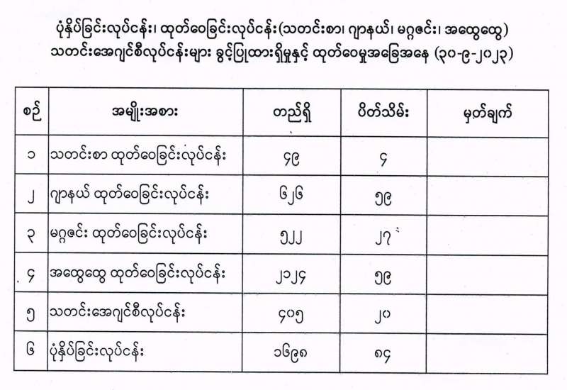 ၁။ သယံဇာတနှင့် သဘာဝပတ်ဝန်းကျင်ထိန်းသိမ်းရေးဝန်ကြီးဌာန၏ ကြီးကြပ်မှုဖြင့် မြန်မာ့ကျောက်မျက်ရတနာပြပွဲဗဟိုကော်မတီသည် ၂၀၂၃ ခုနှစ်၊ နှစ်လယ် မြန်မာ့ကျောက်မျက်ရတနာပြပွဲကို အောက်တိုဘာလ (၂၀)ရက်မှ (၂၈)ရက်အထိ နေပြည်တော်၊ မဏိရတနာ ကျောက်စိမ်းခန်းမတွင် ကျင်းပပြုလုပ်မည်ဖြစ်ပြီး ရတနာပြပွဲတွင် မြန်မာနိုင်ငံမှ ထွက်ရှိသော ပုလဲ၊ ကျောက်မျက်နှင့် ကျောက်စိမ်းအတွဲများကို တင်ပြရောင်းချသွားမည် ဖြစ်ပါသည်။