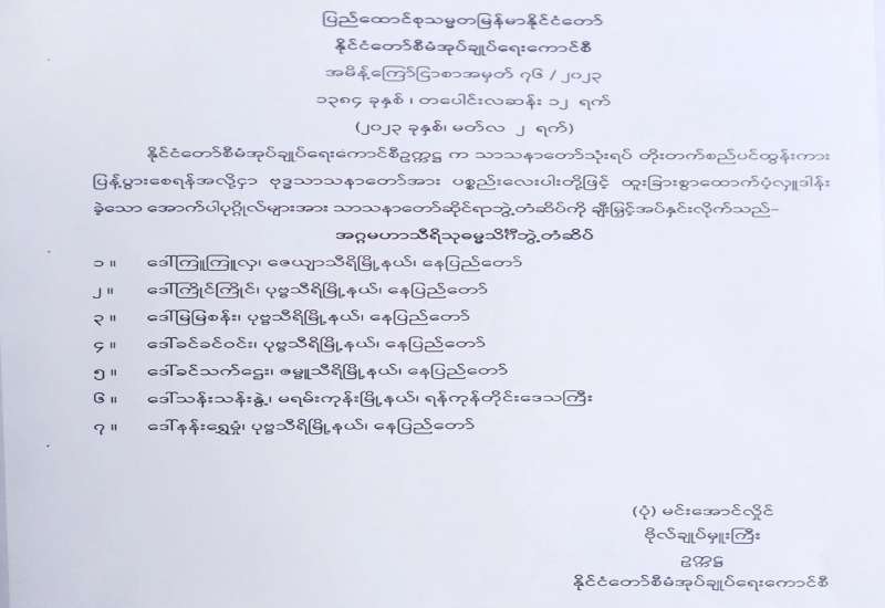 အကြောင်းအမျိုးမျိုးကြောင့် နေရာဒေသအသီးသီးသို့ ရောက်ရှိနေကြသည့် မြန်မာနိုင်ငံသားများအား ပြန်လည်ဖိတ်ခေါ်ခြင်း