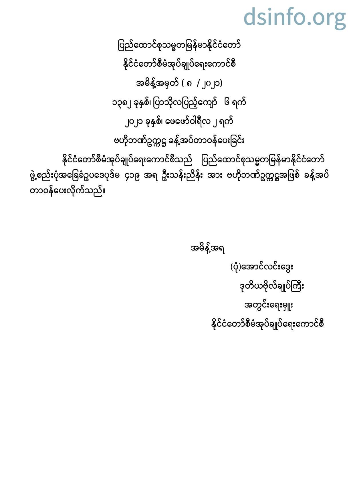 နိုင်ငံတော်အစိုးရ၏ ကြေညာချက်များ