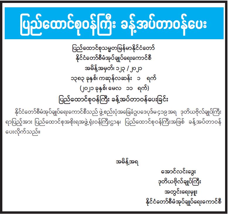 ဝန်ကြီးဌာန ကြေညာချက်များ