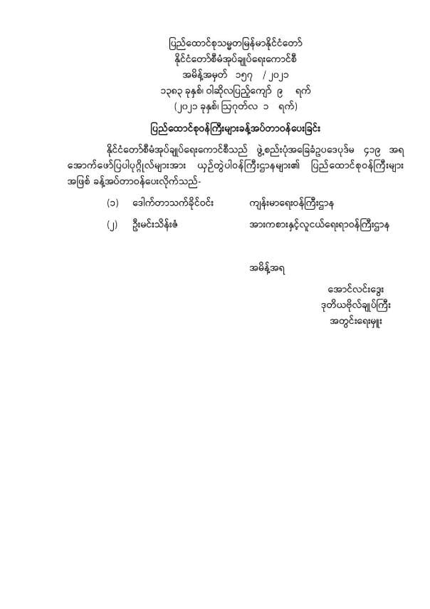 ဝန်ကြီးဌာန ကြေညာချက်များ
