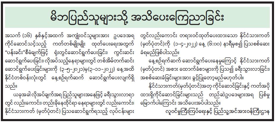 မိဘပြည်သူများသို့ အသိပေးကြေညာခြင်း