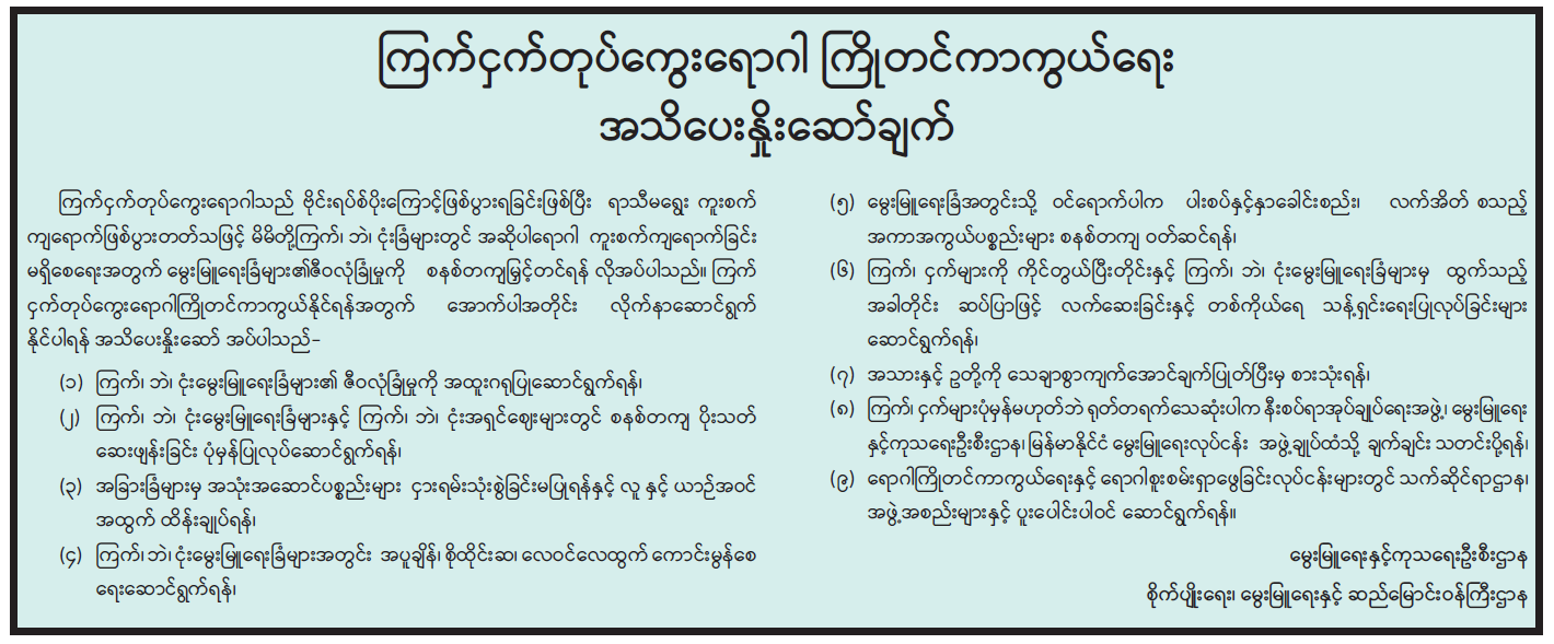 ဦးစီးဌာနနှင့် လုပ်ငန်းများ၏ ကြေညာချက်များ