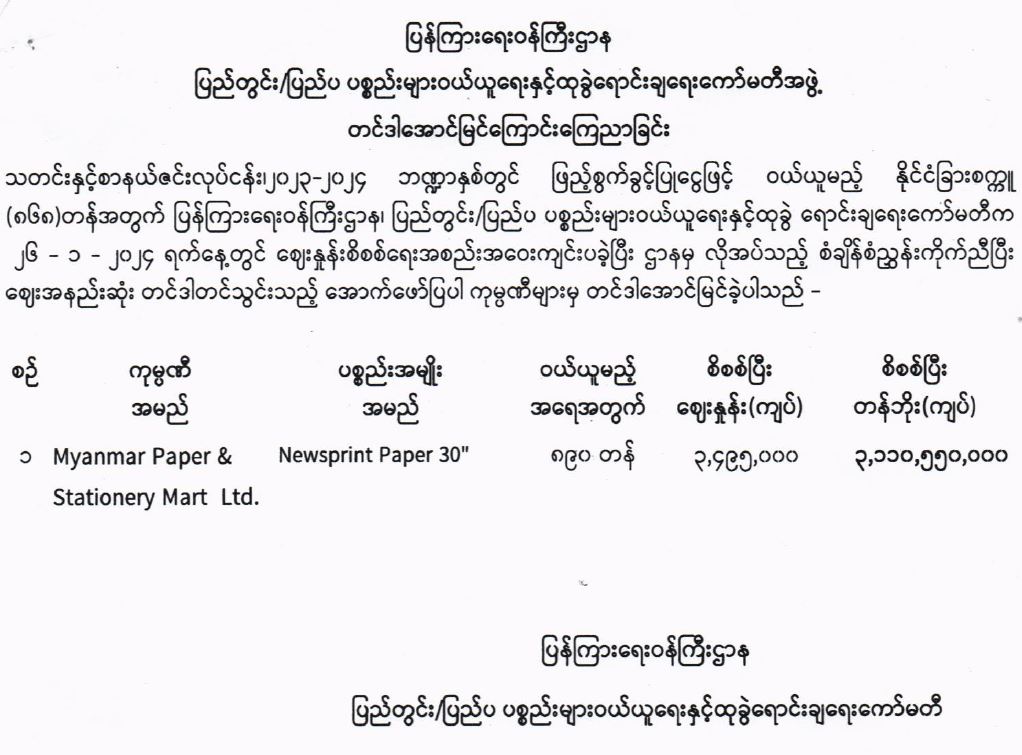 ဝန်ကြီးဌာန ကြေညာချက်များ