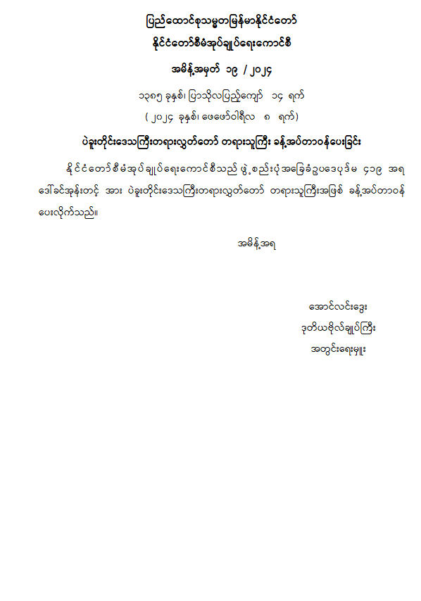 ဝန်ကြီးဌာန ကြေညာချက်များ