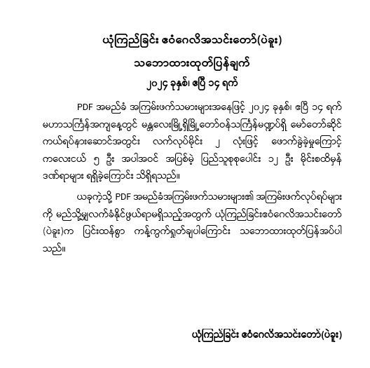 ယုံကြည်ခြင်း ဧဝံဂေလိအသင်းတော် (ပဲခူး) သဘောထားထုတ်ပြန်ချက်