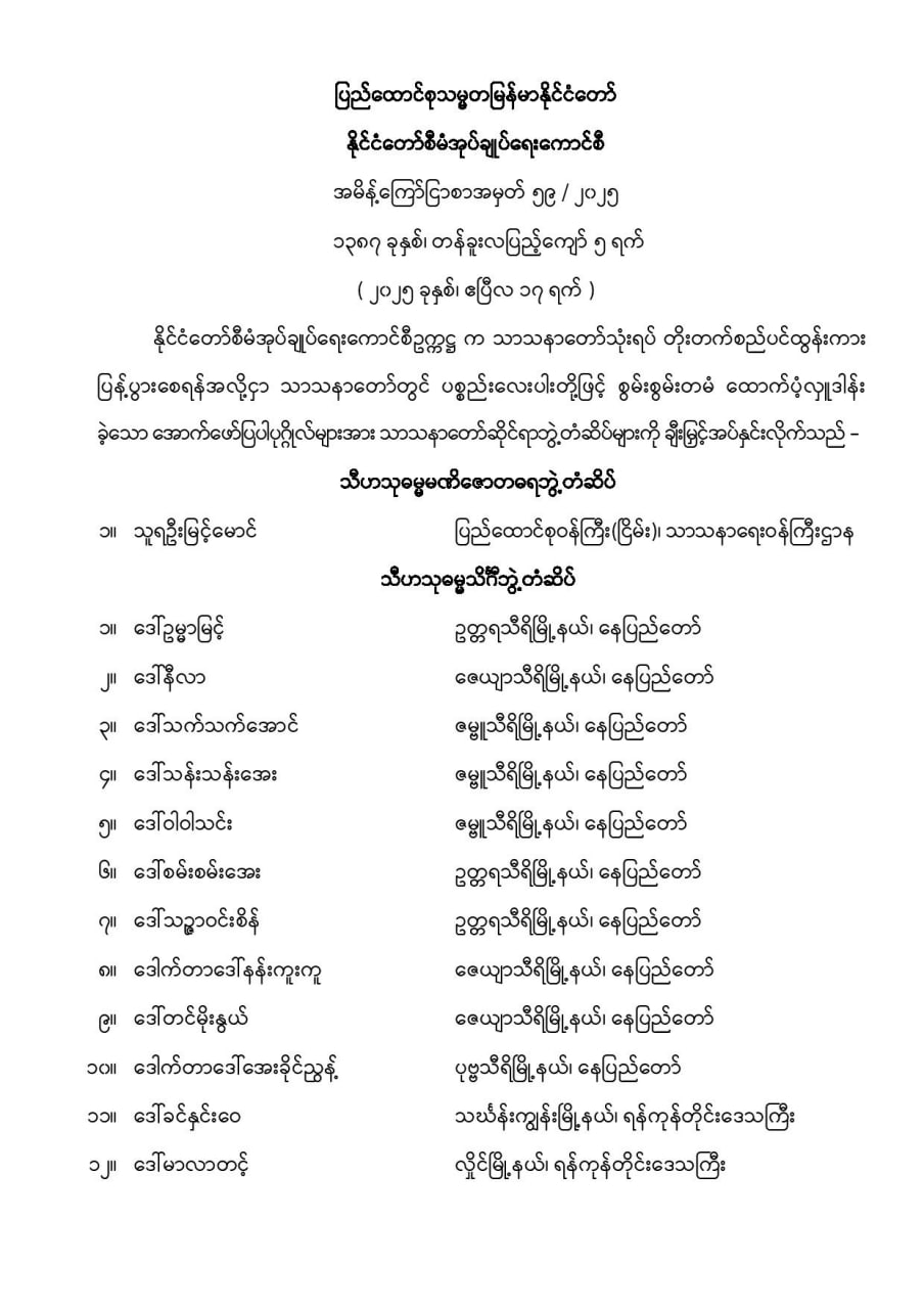 ပြည်ထောင်စုသမ္မတမြန်မာနိုင်ငံတော် နိုင်ငံတော်စီမံအုပ်ချုပ်ရေးကောင်စီ အမိန့်ကြော်ငြာစာအမှတ် ၅၉ / ၂၀၂၅