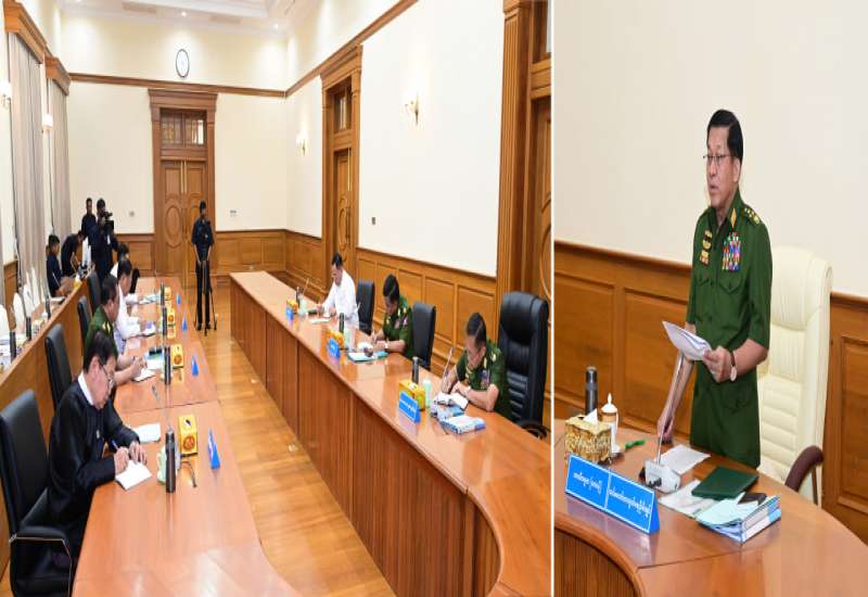 နိုင်ငံတော်လုံခြုံရေးနှင့် အေးချမ်းသာယာရေးကော်မရှင်အစည်းအဝေးကို ယနေ့နံနက်ပိုင်းတွင် ကျင်းပပြုလုပ်ရာ နိုင်ငံတော်လုံခြုံရေးနှင့် အေးချမ်းသာယာရေးကော်မရှင်ဥက္ကဋ္ဌ ဗိုလ်ချုပ်မှူးကြီး မင်းအောင်လှိုင် တက်ရောက်အမှာစကား ပြောကြားသည်။