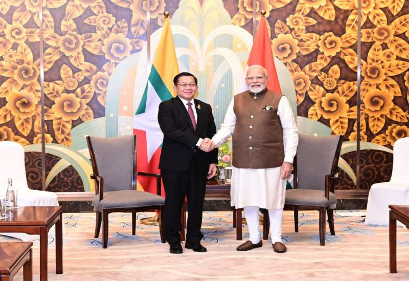 တရုတ်ပြည်သူ့သမ္မတ နိုင်ငံသို့အလုပ်သဘောခရီးရောက်ရှိနေသော ပြည်ထောင်စုသမ္မတမြန်မာနိုင်ငံတော် ယာယီသမ္မတ နိုင်ငံတော်လုံခြုံရေးနှင့် အေးချမ်းသာယာရေးကော်မရှင်ဥက္ကဋ္ဌ ဗိုလ်ချုပ်မှူးကြီး မင်းအောင်လှိုင်သည် အိန္ဒိယနိုင်ငံဝန်ကြီးချုပ် H.E. Mr. Shri Narendra Modi နှင့် ယနေ့ဒေသစံတော်ချိန် ညနေ ၅ နာရီတွင် တီယန်ကျင်းမြို့ရှိ Wanda Vista ဟိုတယ်၌ တွေ့ဆုံဆွေးနွေးသည်။
