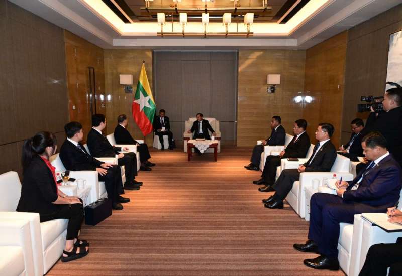တရုတ်ပြည်သူ့သမ္မတနိုင်ငံသမ္မတ H.E. Mr. Xi Jinping ၏ ဖိတ်ကြားချက်အရ တရုတ်ပြည်သူ့သမ္မတနိုင်ငံသို့ အလုပ်သဘောခရီးရောက်ရှိနေသည့် ပြည်ထောင်စုသမ္မတမြန်မာနိုင်ငံတော် ယာယီသမ္မတ နိုင်ငံတော်လုံခြုံရေးနှင့်အေးချမ်းသာယာရေးကော်မရှင်ဥက္ကဋ္ဌ ဗိုလ်ချုပ်မှူးကြီး မင်းအောင်လှိုင်သည် ယနေ့ဒေသစံတော်ချိန် ညနေ ၅ နာရီတွင် တီယန်ကျင်းမြို့ရှိ တီယန်ကျင်းဧည့်ဂေဟာ၌ တရုတ်ပြည်သူ့သမ္မတနိုင်ငံသမ္မတနှင့် တွေ့ဆုံဆွေးနွေးသည်။