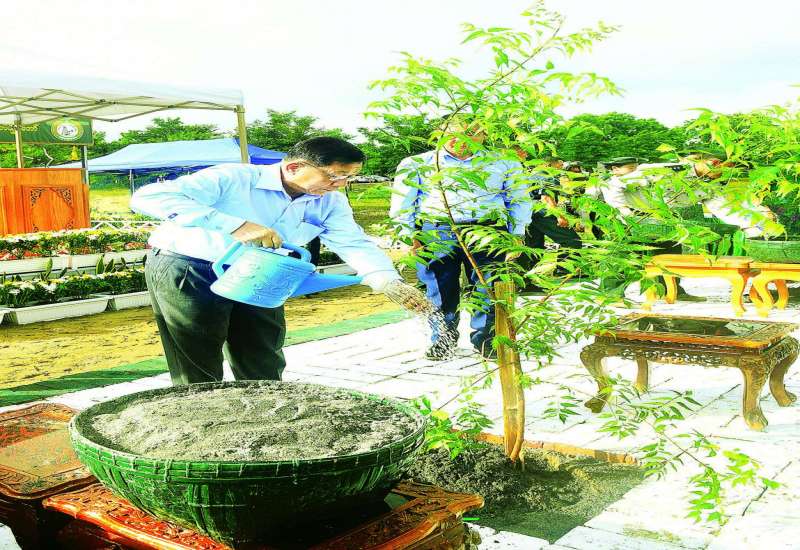 မကွေးတိုင်းဒေသကြီး၊ မင်းဘူးခရိုင်၊ မင်းဘူးမြို့နယ်၊ အပူပိုင်းဒေသ(၁၃)ခရိုင် စိမ်းလန်းစိုပြေရေး၊ ၂၀၂၅ ခုနှစ် နိုင်ငံတော်အဆင့် ဒုတိယအကြိမ် လူထုလှုပ်ရှားမှုအသွင်ဖြင့် သစ်ပင်စိုက်ပျိုးပွဲကို ယနေ့နံနက်ပိုင်းတွင် မင်းဘူးမြို့နယ်၊ မင်းဘူး-ပဒါန်း-အမ်းကားလမ်း မိုင်တိုင်အမှတ် ၄/၇ မှ ၅/၀ အကြားကျင်းပပြလုပ်ရာ နိုင်ငံတော်လုံခြုံရေးနှင့် အေးချမ်းသာယာရေးကော်မရှင်ဥက္ကဋ္ဌ ဗိုလ်ချုပ်မှူးကြီးမင်းအောင်လှိုင် တက်ရောက်၍ တမာပျိုးပင်ကို ဦးဆောင်စိုက်ပျိုးပေးသည်။