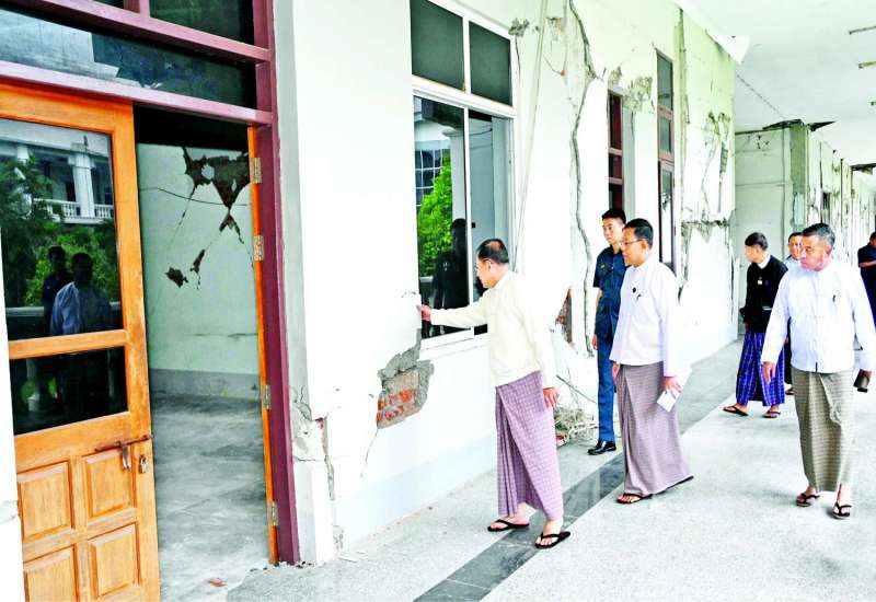 နိုင်ငံတော်စီမံအုပ်ချုပ်ရေးကောင်စီဥက္ကဋ္ဌ နိုင်ငံတော်ဝန်ကြီးချုပ် ဗိုလ်ချုပ်မှူးကြီး မင်းအောင်လှိုင်သည် ကောင်စီအတွင်းရေးမှူး ဗိုလ်ချုပ်ကြီး အောင်လင်းဒွေး၊ ကောင်စီတွဲဖက်အတွင်းရေးမှူး ဗိုလ်ချုပ်ကြီး ရဲဝင်းဦးနှင့် အဖွဲ့ဝင်များလိုက်ပါ၍ ယနေ့မွန်းလွဲပိုင်းတွင် ပြည်ထောင်စုနယ်မြေနေပြည်တော်ရှိ လွှတ်တော်အဆောက်အဦများတွင် မန္တလေးငလျင်ကြီးဘေးဒဏ်ကြောင့် ထိခိုက်ပျက်စီးမှုများဖြစ်ပေါ်ခဲ့မှုများကို ပြန်လည်ပြုပြင်ရေးလုပ်ငန်း ဆောင်ရွက်နေမှုများအား သွားရောက်ကြည့်ရှုစစ်ဆေးပြီး လိုအပ်သည်များ လမ်းညွှန်မှာကြားသည်။