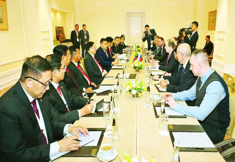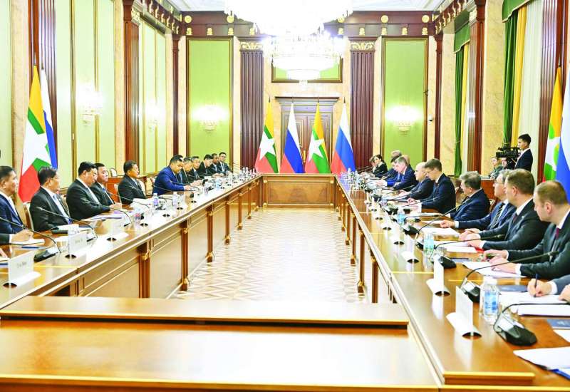 ရုရှားဖက်ဒရေးရှင်းနိုင်ငံမော်စကိုမြို့၌ တရားဝင်ချစ်ကြည်ရေးခရီး ရောက်ရှိနေသည့် နိုင်ငံတော်စီမံအုပ်ချုပ်ရေးကောင်စီဥက္ကဋ္ဌ နိုင်ငံတော်ဝန်ကြီးချုပ် ဗိုလ်ချုပ်မှူးကြီးမင်းအောင်လှိုင်သည် ယနေ့နံနက်ပိုင်းတွင် ရုရှားဖက်ဒရေးရှင်းနိုင်ငံ ကာကွယ်ရေးဝန်ကြီး H.E. Mr. Andrei Removich နှင့် ရုရှားဖက်ဒရေးရှင်းနိုင်ငံ ကာကွယ်ရေးဝန်ကြီးဌာန အစည်းအဝေးခန်းမ၌ တွေ့ဆုံဆွေးနွေးသည်။