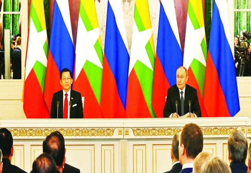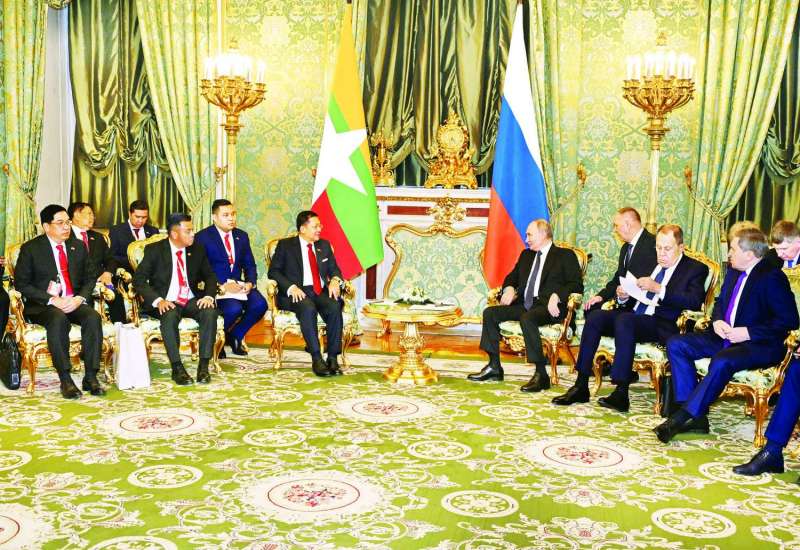 ရုရှားဖက်ဒရေးရှင်းနိုင်ငံသမ္မတ H.E. Vladimir Vladimirovich Putin ၏ ဖိတ်ကြားချက်အရ ရုရှားဖက်ဒရေးရှင်းနိုင်ငံသို့ တရားဝင်ချစ်ကြည်ရေးခရီးရောက်ရှိနေသည့် နိုင်ငံတော်စီမံအုပ်ချုပ်ရေးကောင်စီဥက္ကဋ္ဌ နိုင်ငံတော်ဝန်ကြီးချုပ် ဗိုလ်ချုပ်မှူးကြီး မင်းအောင်လှိုင်သည် ယနေ့ဒေသစံတော်ချိန် ညနေပိုင်းတွင် မော်စကိုမြို့၊ ကရင်မလင်နန်းတော်၌ ရုရှားဖက်ဒရေးရှင်းနိုင်ငံသမ္မတ H.E. Vladimir Vladimirovich Putin နှင့် သီးခြားတွေ့ဆုံဆွေးနွေးသည်။
