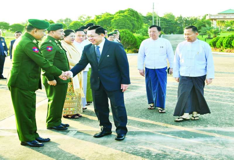 တရုတ်ပြည်သူ့သမ္မတနိုင်ငံအစိုးရ၏ ဖိတ်ကြားချက်အရ ထိပ်သီးအစည်းအဝေးများ တက်ရောက်ရန် တရုတ်ပြည်သူ့သမ္မတနိုင်ငံသို့ ရောက်ရှိနေသည့် နိုင်ငံတော်စီမံအုပ်ချုပ်ရေးကောင်စီဥက္ကဋ္ဌ နိုင်ငံတော်ဝန်ကြီးချုပ် ဗိုလ်ချုပ်မှူးကြီး မင်းအောင်လှိုင်သည် တရုတ်ပြည်သူ့သမ္မတနိုင်ငံဝန်ကြီးချုပ် H.E. Mr. Li Qiang အဖွဲ့အား ယနေ့မွန်းလွဲပိုင်းတွင် တရုတ်ပြည်သူ့သမ္မတနိုင်ငံ ကူမင်းမြို့ရှိ Haigeng Garden Hotel ၌ တွေ့ဆုံသည်။