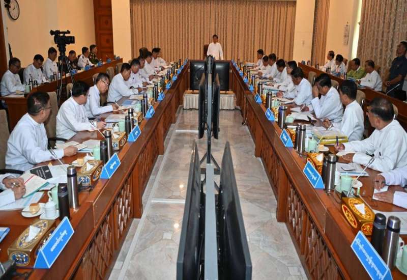 သဘာဝဘေးအန္တရာယ်စီမံခန့်ခွဲမှုဆိုင်ရာအစည်းအဝေးကို ယနေ့မွန်းလွဲပိုင်းတွင် နိုင်ငံတော်စီမံအုပ်ချုပ်ရေးကောင်စီဥက္ကဋ္ဌရုံး၊ အစည်းအဝေးခန်းမ၌ ကျင်းပပြုလုပ်ရာ နိုင်ငံတော်စီမံအုပ်ချုပ်ရေးကောင်စီဥက္ကဋ္ဌ နိုင်ငံတော်ဝန်ကြီးချုပ် ဗိုလ်ချုပ်မှူးကြီး မင်းအောင်လှိုင် တက်ရောက်ဆွေးနွေး၍ လိုအပ်သည်များ မှာကြားသည်။