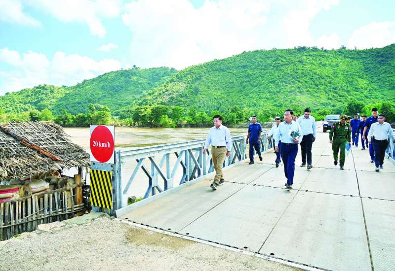 နိုင်ငံတော်စီမံအုပ်ချုပ်ရေးကောင်စီဥက္ကဋ္ဌ နိုင်ငံတော်ဝန်ကြီးချုပ် ဗိုလ်ချုပ်မှူးကြီး မင်းအောင်လှိုင်သည် ယနေ့နံနက်ပိုင်းတွင် ကောင်စီတွဲဖက်အတွင်းရေးမှူး ဗိုလ်ချုပ်ကြီး ရဲဝင်းဦး၊ ကောင်စီဝင်များဖြစ်ကြသည့် ဗိုလ်ချုပ်ကြီး မြထွန်းဦးနှင့် ဗိုလ်ချုပ်ကြီး မောင်မောင်အေး၊ ပြည်ထောင်စုဝန်ကြီးများဖြစ်ကြသည့် ဦးမင်းနောင်၊ ဦးလှမိုး၊ ဒေါက်တာ ညွန့်ဖေ၊ မန္တလေးတိုင်းဒေသကြီး ဝန်ကြီးချုပ် ဦးမျိုးအောင်၊ ကာကွယ်ရေးဦးစီးချုပ်ရုံးမှ အဆင့်မြင့်တပ်မတော်အရာရှိကြီးများနှင့် တာဝန်ရှိသူများလိုက်ပါ၍ ရေကြီးရေလျှံမှုကြောင့် ထိခိုက်ပျက်စီးမှုများဖြစ်ပေါ်ခဲ့သည့် သာစည်-မန္တလေး မီးရထားလမ်းပိုင်းပေါ်ရှိ စမုံချောင်းတံတား ပြန်လည်ပြုပြင်ဆောင်ရွက်နေမှုအခြေအနေများအား သွားရောက်ကြည့်ရှုစစ်ဆေးသည်။