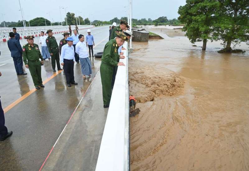 နိုင်ငံတော်စီမံအုပ်ချုပ်ရေးကောင်စီဥက္ကဋ္ဌ နိုင်ငံတော်ဝန်ကြီးချုပ် ဗိုလ်ချုပ်မှူးကြီး မင်းအောင်လှိုင်သည် ယနေ့နံနက်ပိုင်းတွင် ကောင်စီတွဲဖက်အတွင်းရေးမှူး ဗိုလ်ချုပ်ကြီး ရဲဝင်းဦး၊ ပြည်ထောင်စုဝန်ကြီးများဖြစ်ကြသည့် ဦးမင်းနောင်၊ ဦးမျိုးသန့်၊ နေပြည်တော်ကောင်စီဥက္ကဋ္ဌ ဦးသန်းထွန်းဦး၊ ကာကွယ်ရေးဦးစီးချုပ်ရုံးမှ အဆင့်မြင့်တပ်မတော်အရာရှိကြီးများ၊ နေပြည်တော်တိုင်းစစ်ဌာနချုပ်တိုင်းမှူးနှင့် တာဝန်ရှိသူများလိုက်ပါ၍ နေပြည်တော်ကောင်စီနယ်မြေအတွင်း မိုးအဆက်မပြတ်ရွာသွန်းမှုကြောင့် ပျက်စီးမှုများဖြစ်ပေါ်ခဲ့သည့် လမ်းတံတားများအား ပြန်လည်ပြုပြင်ဆောင်ရွက်နေမှုနှင့် ရေကြီးရေလျှံမှု ဖြစ်ပေါ်ခဲ့မှုအခြေအနေများကို လိုက်လံကြည့်ရှုစစ်ဆေးသည်။