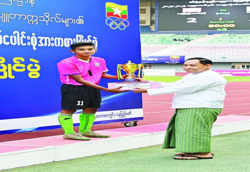 နည်းပညာတက္ကသိုလ်များနှင့် ကွန်ပျူတာတက္ကသိုလ်များ၏ တက္ကသိုလ်ပေါင်းစုံ အားကစားပြိုင်ပွဲ ဘောလုံးပြိုင်ပွဲ ဗိုလ်လုပွဲနှင့်ဆုချီးမြှင့်ခြင်းအခမ်းအနားကို ယနေ့ညနေပိုင်းတွင် နေပြည်တော်ရှိ ဝဏ္ဏသိဒ္ဓိအားကစားကွင်း၌ ကျင်းပပြုလုပ်ရာ နိုင်ငံတော်စီမံအုပ်ချုပ်ရေးကောင်စီဥက္ကဋ္ဌ နိုင်ငံတော်ဝန်ကြီးချုပ် ဗိုလ်ချုပ်မှူးကြီးမင်းအောင်လှိုင် တက်ရောက်ကြည့်ရှုအားပေးပြီး ဆုများပေးအပ်ချီးမြှင့်သည်။