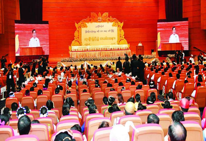 နိုင်ငံတော်စီမံအုပ်ချုပ်ရေးကောင်စီအစည်းအဝေး(၅/၂၀၂၃)ကို ယနေ့နံနက်ပိုင်းတွင် နေပြည်တော်ရှိ နိုင်ငံတော်စီမံအုပ်ချုပ်ရေးကောင်စီဥက္ကဋ္ဌရုံး အစည်းအဝေးခန်းမ၌ ကျင်းပပြုလုပ်ရာ နိုင်ငံတော်စီမံအုပ်ချုပ်ရေးကောင်စီဥက္ကဋ္ဌ နိုင်ငံတော်ဝန်ကြီးချုပ် ဗိုလ်ချုပ်မှူးကြီးမင်းအောင်လှိုင် တက်ရောက်အမှာစကားပြောကြားသည်။