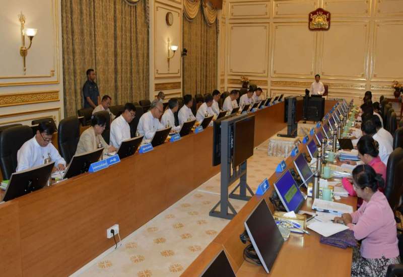 ပြည်ထောင်စုအစိုးရအဖွဲ့အစည်းအဝေး အမှတ်စဉ် (၄/၂၀၂၃) ကို ယနေ့မွန်းလွဲပိုင်းတွင် နေပြည်တော်ရှိ နိုင်ငံတော်စီမံအုပ်ချုပ်ရေးကောင်စီဥက္ကဋ္ဌ ရုံးအစည်းအဝေးခန်းမ၌ကျင်းပရာ နိုင်ငံတော်စီမံအုပ်ချုပ်ရေးကောင်စီဥက္ကဋ္ဌ နိုင်ငံတော်ဝန်ကြီးချုပ် ဗိုလ်ချုပ်မှူးကြီးမင်းအောင်လှိုင် တက်ရောက်အမှာစကားပြောကြားသည်။
