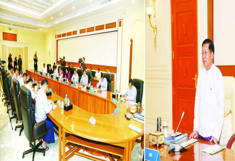 ပြည်ထောင်စုသမ္မတမြန်မာနိုင်ငံတော် စီးပွားရေးရာကော်မတီအစည်းအဝေးအမှတ်စဉ် (၇/၂၀၂၃)ကို ယနေ့နံနက်ပိုင်းတွင် နိုင်ငံတော်စီမံအုပ်ချုပ်ရေးကောင်စီဥက္ကဋ္ဌရုံး အစည်းအဝေးခန်းမ၌ ကျင်းပပြုလုပ်ရာ စီးပွားရေးရာကော်မတီဥက္ကဋ္ဌ နိုင်ငံတော်စီမံအုပ်ချုပ်ရေးကောင်စီဥက္ကဋ္ဌ နိုင်ငံတော်ဝန်ကြီးချုပ် ဗိုလ်ချုပ်မှူးကြီး မင်းအောင်လှိုင် တက်ရောက်အမှာစကားပြောကြားသည်။