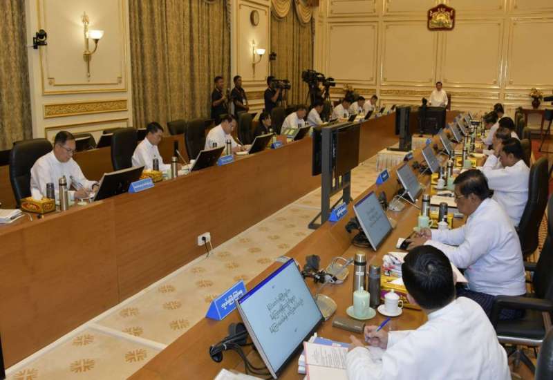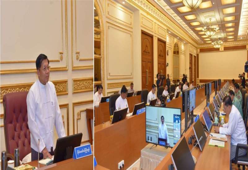 ပြည်ထောင်စုအစိုးရအဖွဲ့အစည်းအဝေး အမှတ်စဉ် (၃/၂၀၂၃)ကို ယနေ့ မွန်းလွဲပိုင်းတွင် နေပြည်တော်ရှိ နိုင်ငံတော်စီမံအုပ်ချုပ်ရေးကောင်စီဥက္ကဋ္ဌရုံး အစည်းအဝေးခန်းမ၌ကျင်းပရာ နိုင်ငံတော်စီမံအုပ်ချုပ်ရေးကောင်စီဥက္ကဋ္ဌ နိုင်ငံတော်ဝန်ကြီးချုပ် ဗိုလ်ချုပ်မှူးကြီး မင်းအောင်လှိုင် တက်ရောက်အမှာစကား ပြောကြားသည်။