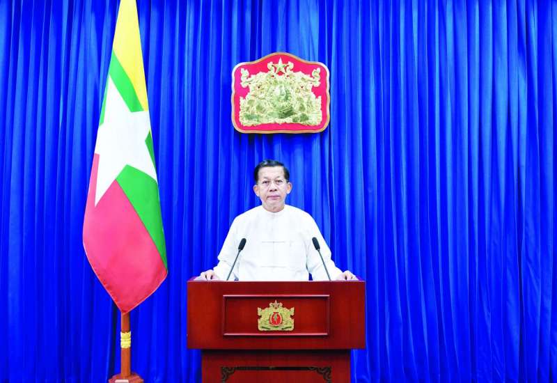 နိုင်ငံ့စီးပွားမြှင့်တင်ရေးအစည်းအဝေးကို ယနေ့မွန်းလွဲပိုင်းတွင် နေပြည်တော်ရှိ နိုင်ငံတော်စီမံအုပ်ချုပ်ရေးကောင်စီဥက္ကဋ္ဌရုံး အစည်းအဝေးခန်းမ၌ ကျင်းပပြုလုပ်ရာ နိုင်ငံတော်စီမံအုပ်ချုပ်ရေးကောင်စီဥက္ကဋ္ဌ နိုင်ငံတော်ဝန်ကြီးချုပ် ဗိုလ်ချုပ်မှူးကြီး မင်းအောင်လှိုင် တက်ရောက်အမှာစကားပြောကြားသည်။