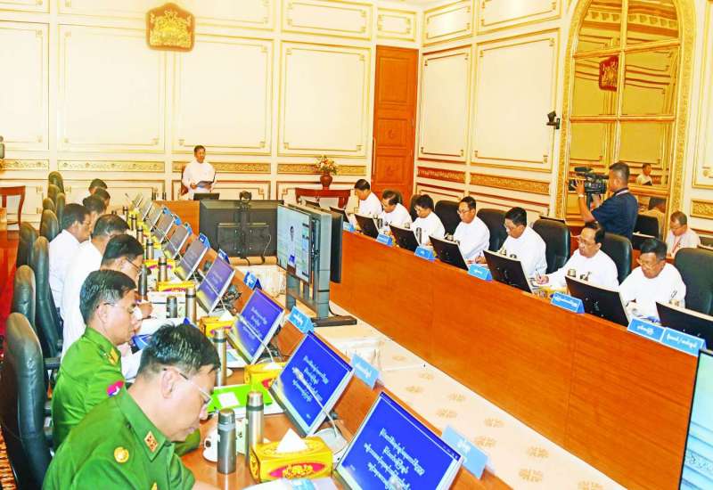 အမျိုးသားအဆင့်ရေအရင်းအမြစ်ကော်မတီ (၁/၂၀၂၃)အစည်းအဝေးကို ယနေ့မွန်းလွဲပိုင်းတွင် နေပြည်တော်ရှိ နိုင်ငံတော်စီမံအုပ်ချုပ်ရေးကောင်စီဥက္ကဋ္ဌရုံး အစည်းအဝေးခန်းမ၌ကျင်းပရာ အမျိုးသားအဆင့်ရေအရင်းအမြစ်ကော်မတီဥက္ကဋ္ဌ နိုင်ငံတော်စီမံအုပ်ချုပ်ရေးကောင်စီဥက္ကဋ္ဌ နိုင်ငံတော်ဝန်ကြီးချုပ် ဗိုလ်ချုပ်မှူးကြီး မင်းအောင်လှိုင် တက်ရောက်အမှာစကားပြောကြားသည်။