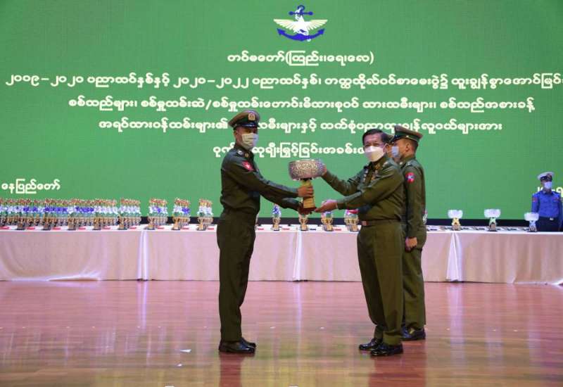 ၂၀၂၂ ခုနှစ်၊ ကာကွယ်ရေးဦးစီးချုပ်ရုံး (ကြည်း၊ ရေ၊ လေ) မိသားစုများ၏ ဒုတိယအကြိမ် မိုးရာသီသစ်ပင်စိုက်ပျိုးပွဲ အခမ်းအနားကို နေပြည်တော်၊ ဇေယျာသီရိမြို့နယ်၊ ရေဆင်းဆည်အနီး၌ ယနေ့နံနက်ပိုင်းတွင် ကျင်းပပြုလုပ်ရာ နိုင်ငံတော်စီမံအုပ်ချုပ်ရေးကောင်စီဥက္ကဋ္ဌ တပ်မတော်ကာကွယ်ရေးဦးစီးချုပ် ဗိုလ်ချုပ်မှူးကြီး မင်းအောင်လှိုင် တက်ရောက်၍ ရတနာတန်းဝင် ကျွန်းပင်ကို ဦးဆောင်စိုက်ပျိုးပေးသည်။