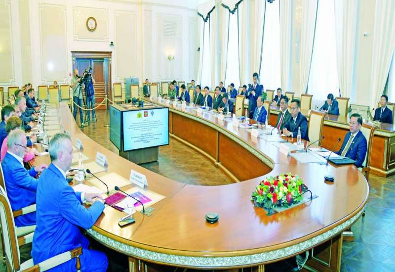 ရုရှားဖက်ဒရေးရှင်းနိုင်ငံ၊ Novosibirsk မြို့သို့ရောက်ရှိနေသည့် နိုင်ငံတော်စီမံ အုပ်ချုပ်ရေးကောင်စီဥက္ကဋ္ဌ၊ နိုင်ငံတော်ဝန်ကြီးချုပ် ဗိုလ်ချုပ်မှူးကြီး မင်းအောင်လှိုင် သည် ယနေ့နံနက်ပိုင်းတွင် Novosibirsk အစိုးရအဖွဲ့ အကြီးအကဲ Mr. Andrey Alexandrovich Travnikov နှင့် အစိုးရအဖွဲ့ရုံး၌ တွေ့ဆုံဆွေးနွေးသည်။