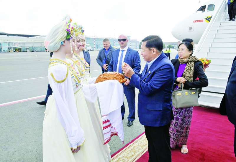 ရုရှားဖက်ဒရေးရှင်းနိုင်ငံသို့ ရောက်ရှိနေသည့် နိုင်ငံတော်စီမံအုပ်ချုပ်ရေး ကောင်စီဥက္ကဋ္ဌ၊ နိုင်ငံတော်ဝန်ကြီးချုပ် ဗိုလ်ချုပ်မှူးကြီး မင်းအောင်လှိုင် ဦးဆောင်သည့် ကိုယ်စားလှယ်အဖွဲ့သည် ရုရှားဖက်ဒရေးရှင်း နိုင်ငံဆိုင်ရာ မြန်မာနိုင်ငံ သံအမတ်ကြီး ဦးလွင်ဦး၊ စစ်သံမှူး ဗိုလ်မှူးချုပ် မိုးကျော်နှင့် တာဝန်ရှိသူများ လိုက်ပါ၍ ယနေ့ဒေသစံတော်ချိန် နံနက်ပိုင်းတွင် စိန့်ပီတာစဘတ်မြို့ ပူကောဗာ အပြည်ပြည်ဆိုင်ရာ လေဆိပ်မှတဆင့် Novosibirsk မြို့သို့ လေကြောင်းခရီးဖြင့် ထွက်ခွာရာ စိန့်ပီတာ စဘတ်မြို့အစိုးရအဖွဲ့မှ တာဝန်ရှိသူများက လေဆိပ်တွင် ပို့ဆောင် နှုတ်ဆက်ကြသည်။