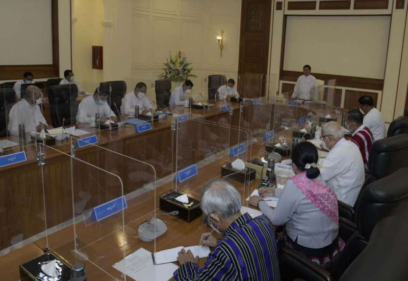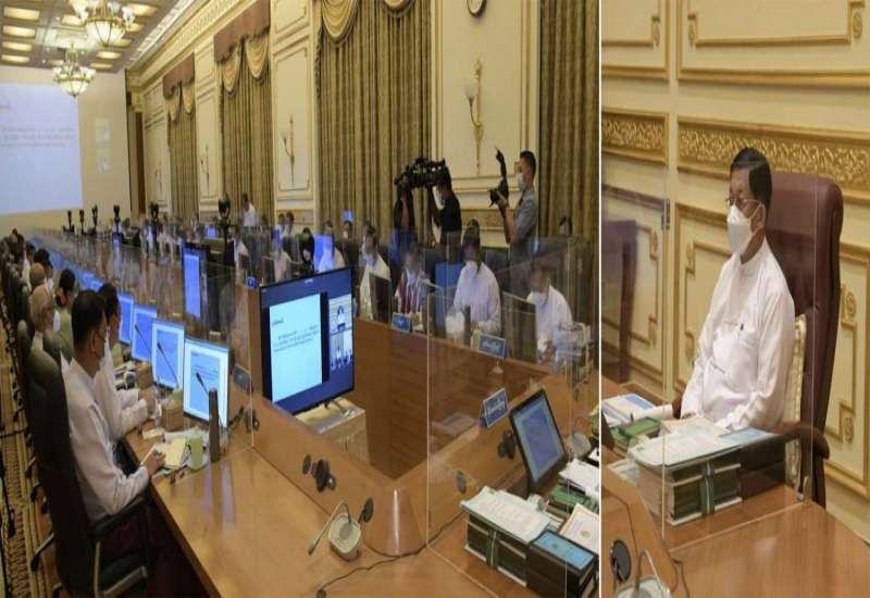 ပြည်ထောင်စုအစိုးရအဖွဲ့ လုပ်ငန်းဆောင်ရွက်ချက်များနှင့်စပ်လျဉ်းသည့် ညှိနှိုင်းအစည်းအဝေး ဒုတိယနေ့ကို ယနေ့နံနက်ပိုင်းတွင် နိုင်ငံတော်စီမံအုပ်ချုပ်ရေးကောင်စီဥက္ကဋ္ဌရုံး အစည်းအဝေးခန်းမ၌ ကျင်းပပြုလုပ်ရာ နိုင်ငံတော်စီမံအုပ်ချုပ်ရေးကောင်စီဥက္ကဋ္ဌ နိုင်ငံတော်ဝန်ကြီးချုပ် ဗိုလ်ချုပ်မှူးကြီးမင်းအောင်လှိုင်တက်ရောက်၍ လိုအပ်သည်များကို လမ်းညွှန်မှာကြားသည်။