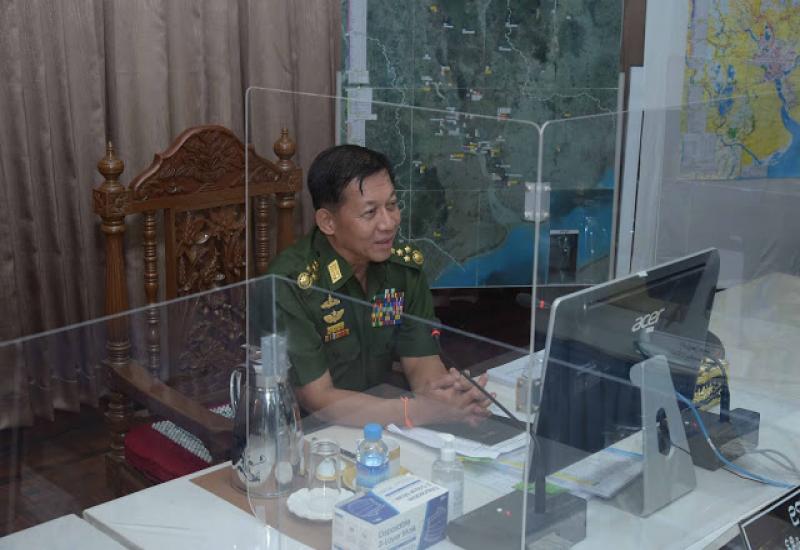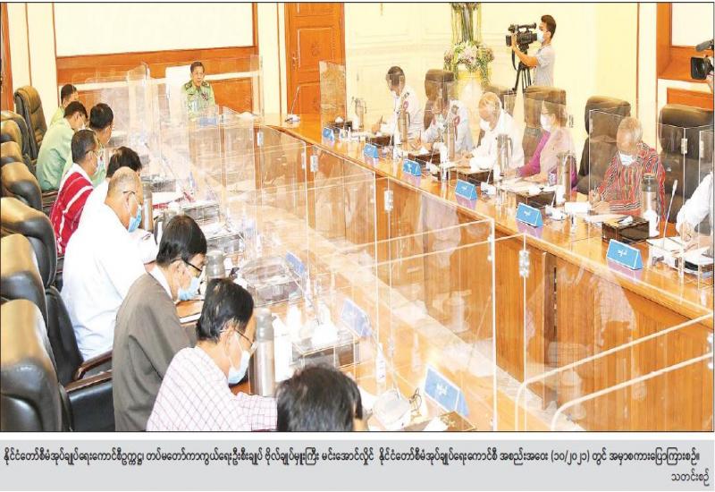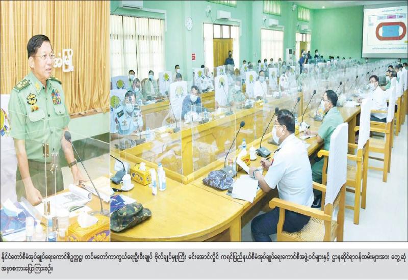 နိုင်ငံတော်စီမံအုပ်ချုပ်ရေးကောင်စီ စီမံခန့်ခွဲရေး ကော်မတီ အစည်းအဝေး (၆/၂၀၂၁) ကို ယနေ့မွန်းလွဲပိုင်းတွင် နေပြည်တော်ရှိ နိုင်ငံတော်စီမံအုပ်ချုပ်ရေး ကောင်စီဥက္ကဋ္ဌရုံး အစည်းအဝေး ခန်းမ၌ ကျင်းပရာ နိုင်ငံတော်စီမံအုပ်ချုပ်ရေးကောင်စီ ဥက္ကဋ္ဌ၊ တပ်မတော်ကာကွယ်ရေးဦးစီးချုပ် ဗိုလ်ချုပ်မှူးကြီး မင်းအောင်လှိုင် တက်ရောက်အမှာစကား ပြောကြားသည်။