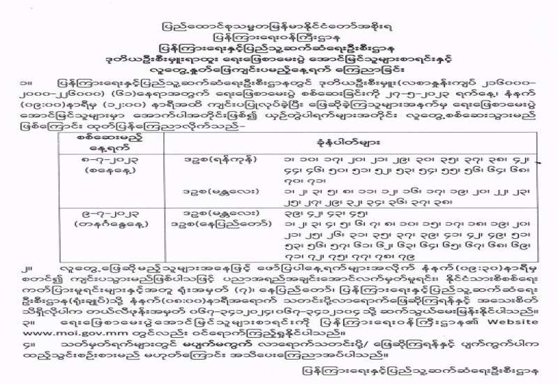 ပြန်ကြားရေးဝန်ကြီးဌာန၊ ပြန်ကြားရေးနှင့်ပြည်သူ့ဆက်ဆံရေးဦးစီးဌာန၏ ၂၀၂၃-၂၀၂၄ ဘဏ္ဍာရေးနှစ်တွင် ပြည်ထောင်စုငွေလုံးငွေရင်းအသုံးစရိတ်ဖြင့် ရုပ်ရှင်မြှင့်တင်ရေးဌာနခွဲ(ရန်ကုန်) အနုပညာရပ်ဝန်းအတွင်းရှိ ရုပ်ရှင်ပြခန်းမ စတူဒီယို(၂)၊ (၃)နှင့် ဝန်ထမ်းအိမ်ရာများ အသုံးပြုလျက် ရှိသည့် သက်တမ်းကြာမြင့်သော လျှပ်စစ်မီးလိုင်း(Overhead)ကြိုးများ လဲလှယ်ပြုပြင်ခြင်းလုပ်ငန်းများ ဆောင်ရွက်ရန်အတွက် (၂၆-၆-၂၀၂၃)ရက်နေ့တွင် ကျင်းပပြုလုပ်သော ပြန်ကြားရေးဝန်ကြီးဌာန၊ စီမံခန့်ခွဲရေးကော်မတီအစည်းအဝေးအမှတ်စဉ်(၁၃/ ၂၀၂၃)၏ သဘောတူညီချက်အရ Primate Construction and Decoration Co.,Ltd က ငွေကျပ် ၂၇,၀၀၀,၀၀၀/- ဖြင့် တင်ဒါအောင်မြင်ကြောင်း ကြေညာအပ်ပါသည်။