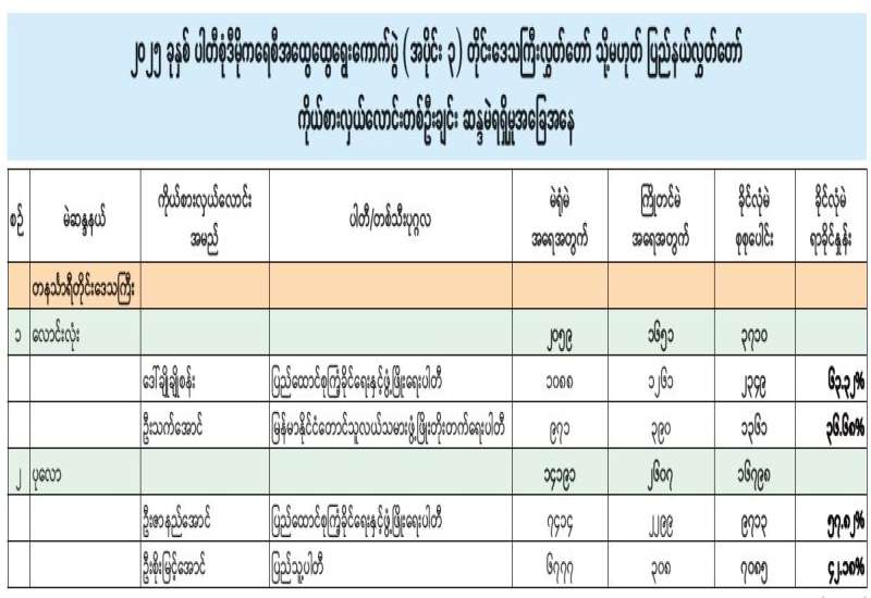 ၂၀၂၅ ခုနှစ် ပါတီစုံဒီမိုကရေစီအ‌ထွေထွေရွေးကောက်ပွဲအပိုင်း (၃) တိုင်းဒေသကြီး/ ပြည်နယ်လွှတ်တော် (အချိုးကျကိုယ်စားပြုစနစ်)၊ တနင်္သာရီတိုင်းဒေသကြီးမဲဆန္ဒနယ်အမှတ် (၁) နိုင်ငံရေးပါတီများ၏ ကိုယ်စားလှယ်လောင်းရရှိမှုအခြေအနေ