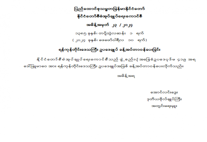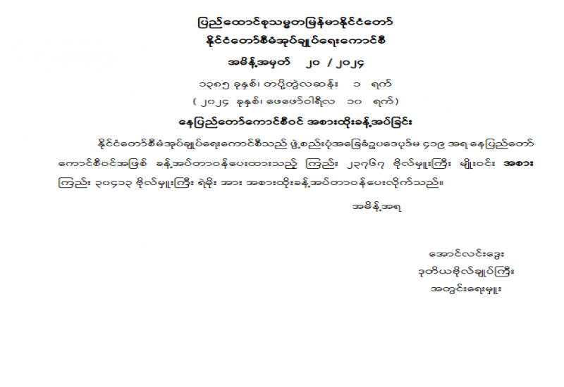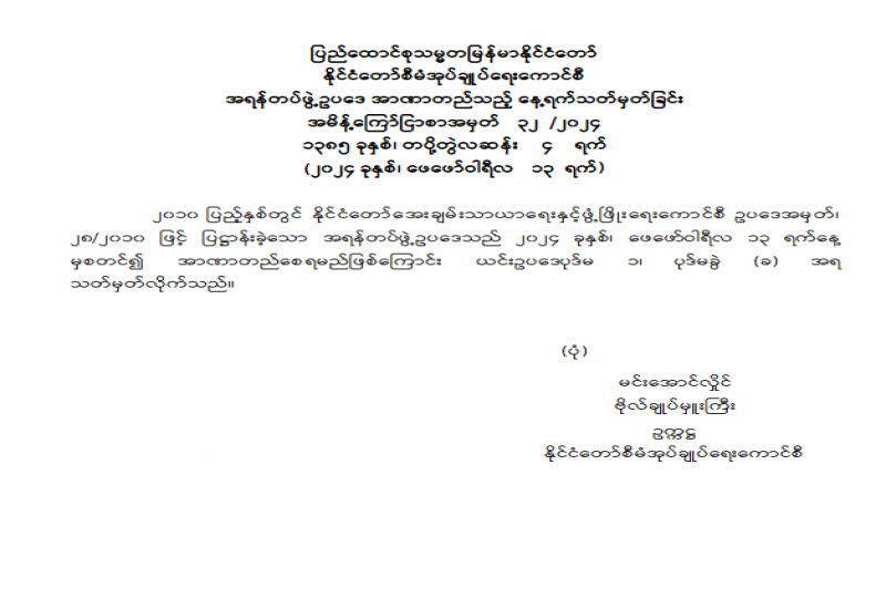 နိုင်ငံတော်စီမံအုပ်ချုပ်ရေးကောင်စီသည် ပြည်သူ့စစ်မှုထမ်းဥပဒေအား ၂၀၂၄ ခုနှစ်၊ ဖေဖော်ဝါရီလ ၁၀ ရက်နေ့တွင် စတင်အာဏာတည်ကြောင်း သတ်မှတ်သည့် အမိန့်ကြော်ငြာစာကို ယနေ့ရက်စွဲဖြင့်ထုတ်ပြန်ကြောင်းသိရသည်။