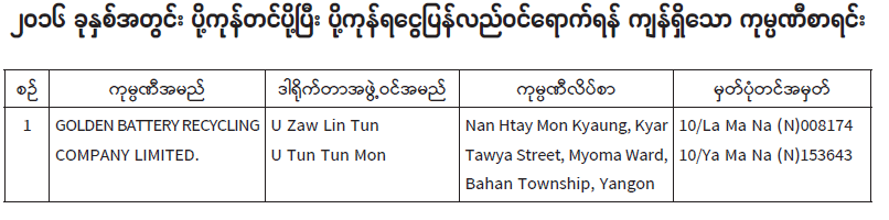 ( ခ )   ပြည်ထောင်စုသမ္မတမြန်မာနိုင်ငံ ကုန်သည်များနှင့် စက်မှုလက်မှုလုပ်ငန်းရှင်များ အသင်းချုပ်မှ ဆက်သွယ်ခေါ်ယူ စာရင်းရှင်းလင်းခြင်း၊