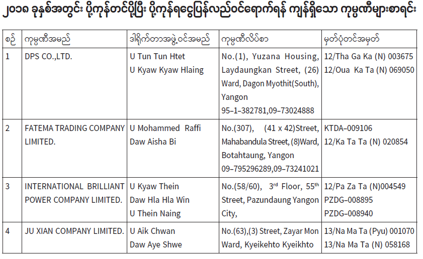 ပို့ကုန်ရငွေပြန်လည်ဝင်ရောက်ရန် ကျန်ရှိသည့် ကုမ္ပဏီ (၁၉)ခုအား အရေးယူဆောင်ရွက်လျက်ရှိပြီး ဒါရိုက်တာအဖွဲ့ဝင်များအား အမည်မည်းစာရင်း ထည့်သွင်းကြောင်းကြေညာ