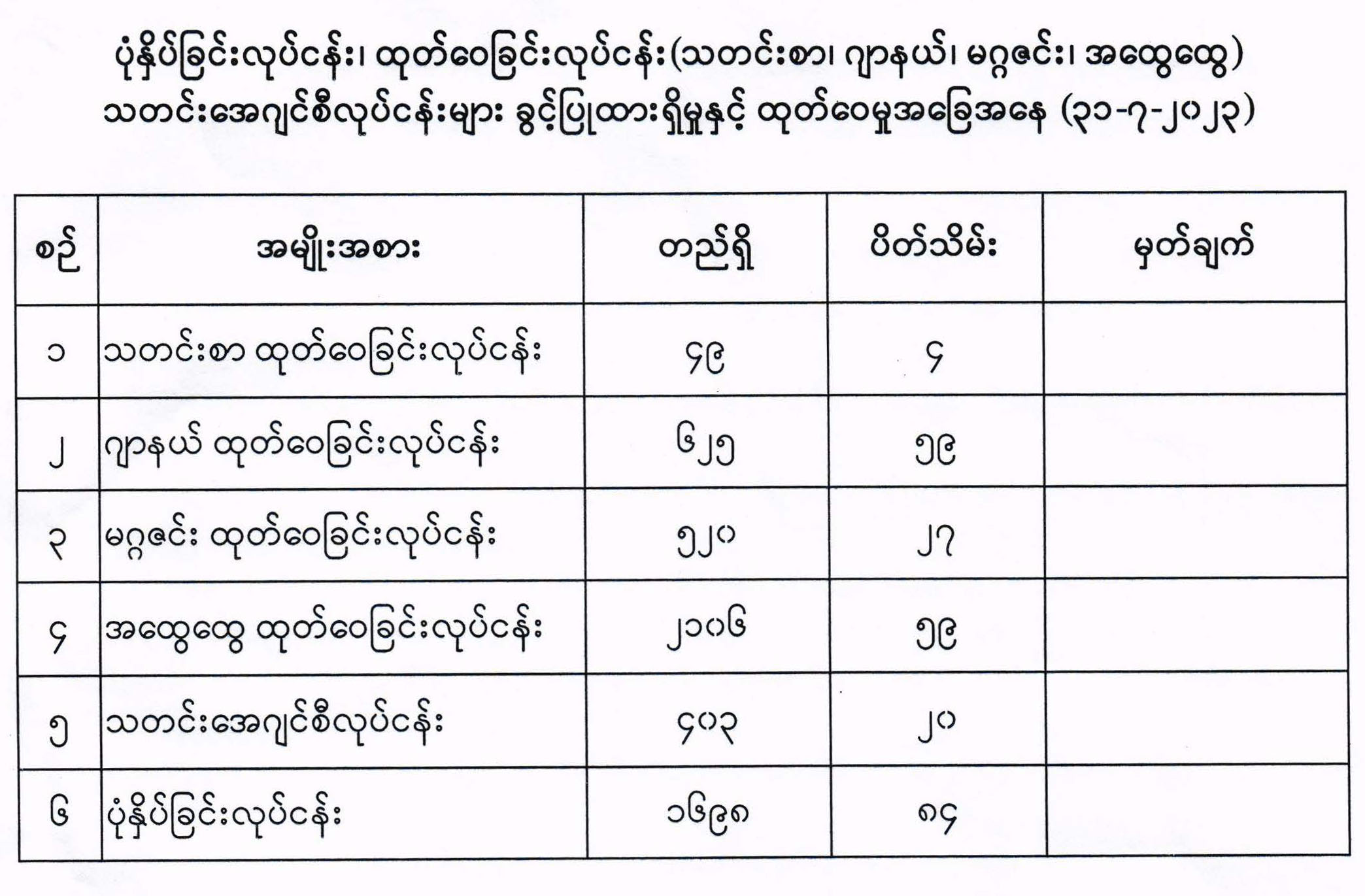 ပုံနှိပ်ခြင်းလုပ်ငန်း၊ ထုတ်ဝေခြင်းလုပ်ငန်း (သတင်းစာ၊ ဂျာနယ်၊ မဂ္ဂဇင်း၊ အထွေထွေ) သတင်းအေဂျင်စီလုပ်ငန်းများ ခွင့်ပြုထားရှိမှုနှင့် ထုတ်ဝေမှုအခြေအနေ (၃၁-၇-၂၀၂၃)
