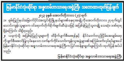 မြန်မာနိုင်ငံလုံးဆိုင်ရာ အစ္စလာမ်ဘာသာရေးအဖွဲ့ကြီး၏ သဘာထားထုတ်ပြန်ချက်