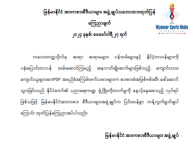 မြန်မာနိုင်ငံ အားကစားမီဒီယာများအဖွဲ့ချုပ် သဘောထားထုတ်ပြန်ကြေညာချက်