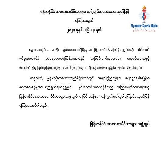 မြန်မာနိုင်ငံ အားကစားမီဒီယာများအဖွဲ့ချုပ် သဘောထားထုတ်ပြန်ကြေညာချက်