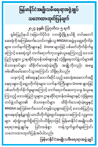 မြန်မာနိုင်ငံအမျိုးသမီးရေးရာအဖွဲ့ချုပ် သဘောထားထုတ်ပြန်ချက်