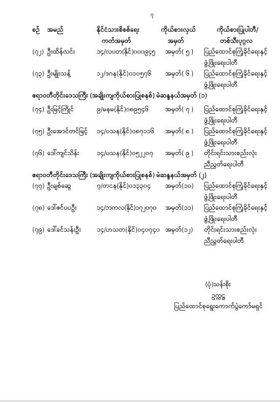 အမျိုးသားလွှတ်တော်ကိုယ်စားလှယ်အဖြစ် ရွေးကောက်တင်မြှောက်ခံရသူများ အမည်စာရင်း ကြေညာခြင်း