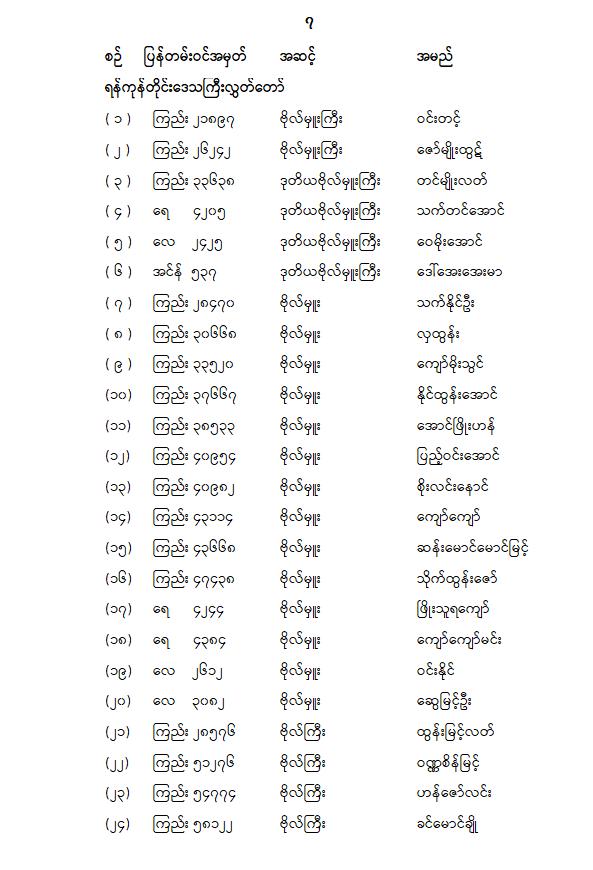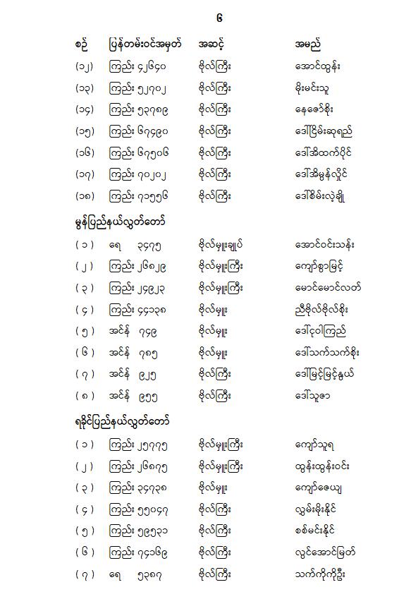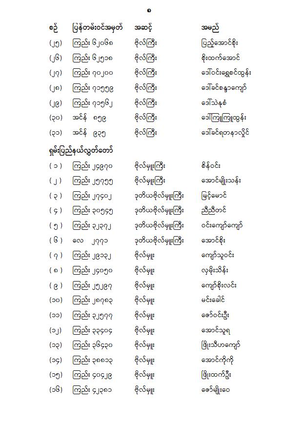 တပ်မတော်သား တိုင်းဒေသကြီးလွှတ်တော် သို့မဟုတ် ပြည်နယ်လွှတ်တော် ကိုယ်စားလှယ်အမည်စာရင်းကြေညာခြင်း