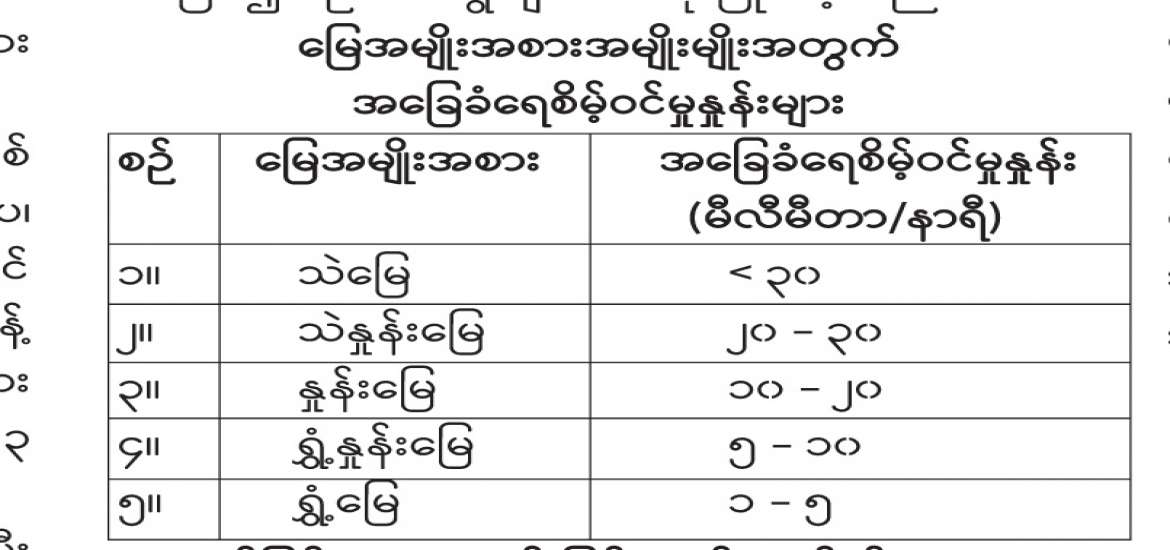 မြေအမျိုးအစားအမျိုးမျိုးအတွက်