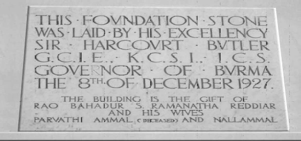 ရန်ကုန်တက္ကသိုလ်စာကြည့်တိုက် အဆောက်အဦကို မြန်မာပြည်ဘုရင်ခံနှင့် ရန်ကုန်တက္ကသိုလ် အဓိပတိလည်းဖြစ် သည့် ဆာဟာကုတ်ဘတ္တလာ (Sir Hercourt Butler) က ၁၉၂၇ ခု ဒီဇင်ဘာလ(၈) ရက်နေ့တွင် အုတ်မြစ်ချပေးခဲ့ပါသည်။ စာကြည့်တိုက်အဆောက်အဦအတွက် ရူပီးငွေ (၂) သိန်းကို စေတနာရှင် ရေးဗဟာဒူး အက်စ် ရာမာနသာရေဒီယာ (Rao Bahudur S. Ramanatha Reddier) က လှူဒါန်းခဲ့ပါသည်။ ၁၉၃၁ ခုနှစ်တွင် အပြီးသတ်ခဲ့ပြီး ထိုစဉ်က မြန်မာပြည်ဘုရင်ခံဖြစ်ပြီး ရန်ကုန်တက္ကသိုလ် အဓိပတိ လည်းဖြစ်သည့် ဆာချားအလက် ဇင်းဒါးအင်းနစ် (Sir Charles Alexander Innes) က ရန်ကုန်တက္ကသိုလ် စာကြည့်တိုက်ကို ဖွင့်လှစ်ပေးခဲ့ပါသည်။ ရန်ကုန်တက္ကသိုလ်ယူနီဗာစီတီကောလိပ် ကျောင်းအုပ်ကြီး မစ္စတာဒီဂျေစလော့စ် (Mr. D.J.Sloss) က ရန်ကုန်တက္ကသိုလ် စာကြည့်တိုက်၏ စာကြည့်တိုက် ကော်မတီဝင် တစ်ဦးအဖြစ် ပါဝင်ဆောင်ရွက်ပေးခဲ့ပါသည်။