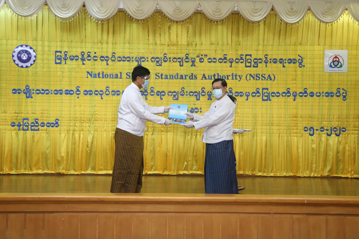 မြန်မာနိုင်ငံ လုပ်သားများ ကျွမ်းကျင်မှု “စံ” သတ်မှတ်ပြဋ္ဌာန်းရေးအဖွဲ့ အမျိုးသားအဆင့် အလုပ် အကိုင်ဆိုင်ရာ ကျွမ်းကျင်မှုအသိအမှတ်ပြုလက်မှတ်ပေးအပ်ပွဲအခမ်းအနား ကျင်းပ