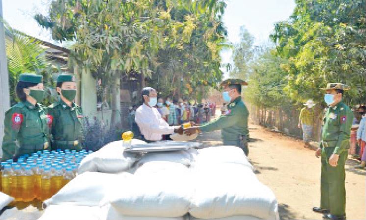 နိုင်ငံတော်နှင့် တပ်မတော်အတွက် အသက်ပေးလှူခဲ့ရသည့် အရာရှိ၊ စစ်သည်များ၏မိသားစုဝင်များ၊ စစ်မှုထမ်းဟောင်း အဖွဲ့ဝင်များနှင့် မိသားစုဝင်များ၊ ရဲမှုထမ်းဟောင်းအဖွဲ့ဝင်များ၊ ပြည်သူ့စစ်(ဌာနေ)တပ်ဖွဲ့ဝင်များနှင့် မီးသတ်တပ်ဖွဲ့ဝင်များအတွက် ကိုဗစ်-၁၉ ရောဂါ ကာကွယ်၊ ထိန်းချုပ်၊ ကုသရေးလုပ်ငန်းများ ဆောင်ရွက်နေသည့်ကာလအတွင်း သွားလာမှုများ ကန့်သတ်ချက်များကြောင့် စားရေးအခက်အခဲမရှိစေရန် ဆန်၊ ဆီ၊ ဆား၊ ပဲ အမည်လေးမျိုးနှင့် ကိုဗစ်-၁၉ ရောဂါ ကာကွယ်ရေး အထောက်အကူပြုပစ္စည်းများကို သက်ဆိုင်ရာ တိုင်းစစ်ဌာနချုပ်များ၊ စစ်မှုထမ်း ဟောင်းရုံး၊ အိမ်ရာများ၊ တပ်နယ်ခန်းမများနှင့် ရဲတပ်ဖွဲ့မှူး ရုံးတို့၌ ပေးအပ်လျက်ရှိသည်။